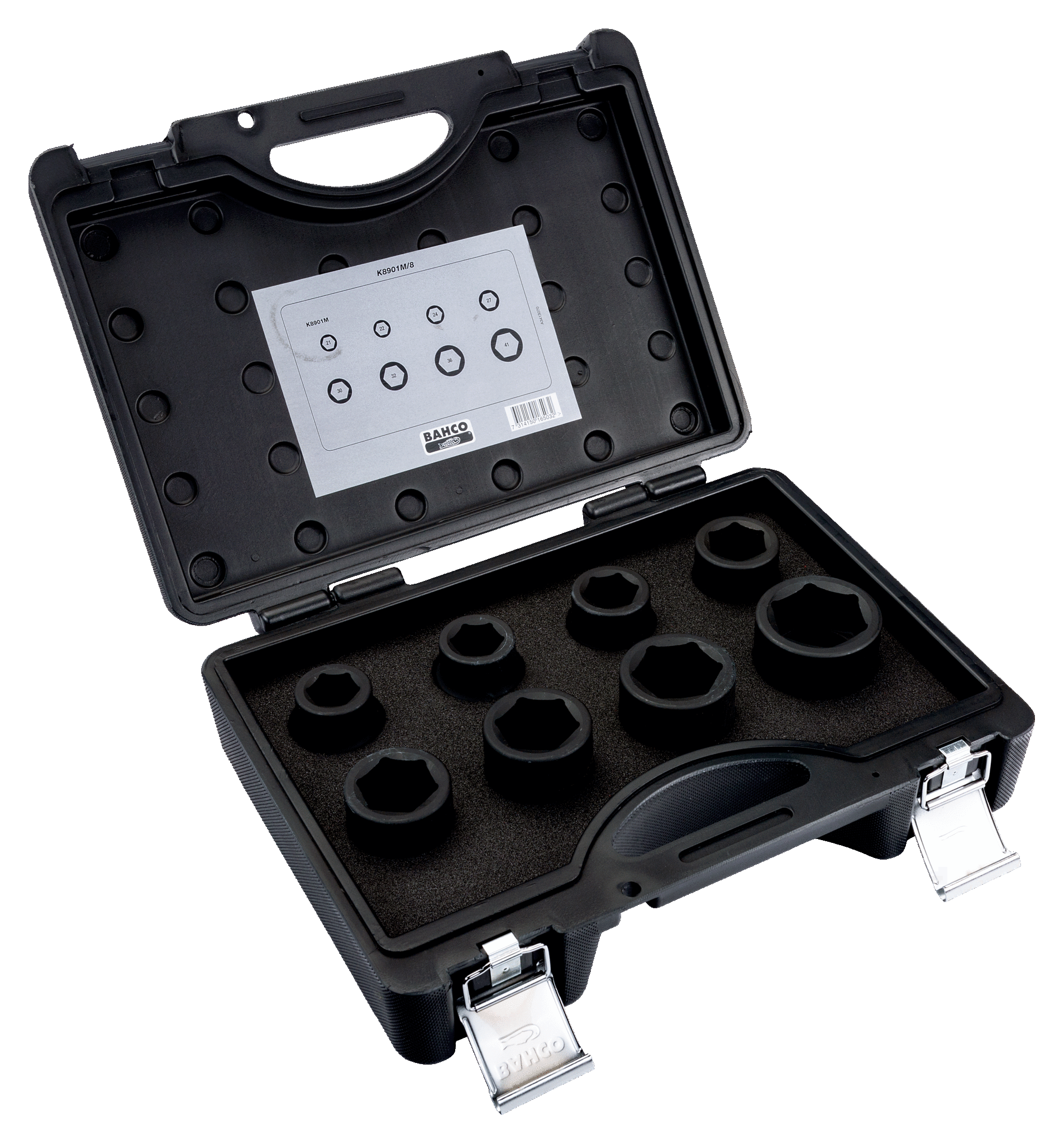 Set dolazi u čvrstoj transportnoj kutiji koja omogućuje organizirano spremanje i lakši transport alata. Bahco K8901M/8 često se koristi u servisima teške mehanizacije, industrijskom održavanju, željezničkoj industriji i drugim radovima gdje je potreban izdržljiv alat za rad s velikim vijcima i visokim momentima.