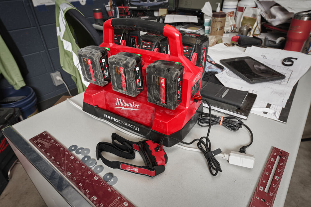 Ovaj punjač za 18V baterije omogućuje istovremeno punjenje do šest baterija sustava M18, uz mogućnost brzog punjenja dviju baterija u isto vrijeme i USB-C priključak za mobilne uređaje. Kompatibilan je s pakirnim sustavom PACKOUT i automatski prilagođava punjenje prema tipu i temperaturi baterije, čime doprinosi duljem vijeku baterija.