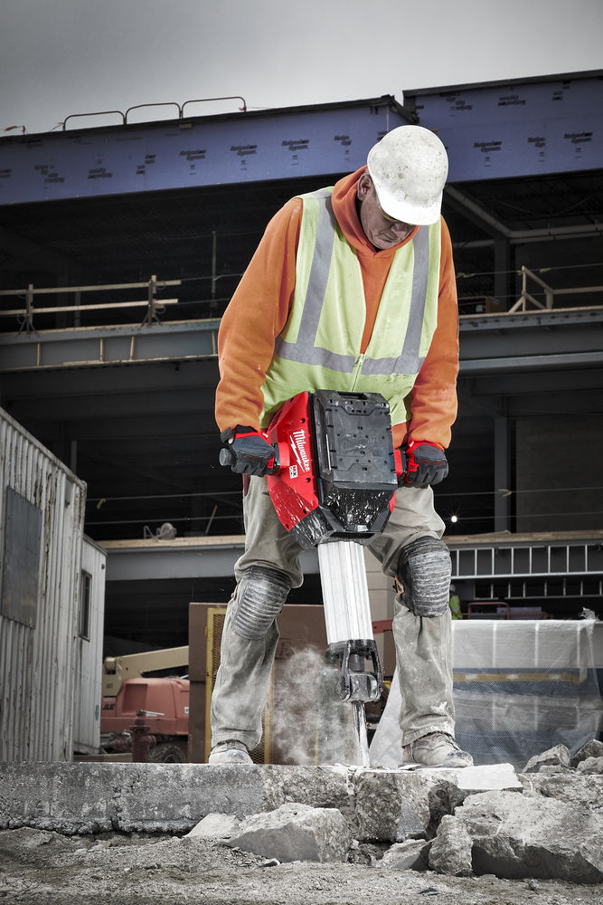 Milwaukee MXFDH2528H je teška aku štemerica za rušenje namijenjena razbijanju masivnih betonskih ploča, temelja i izradi kanala, ali bez kabela, benzina i crijeva za zrak koji smetaju po gradilištu. Velika snaga udarca u kombinaciji s niskim vibracijama znači da alat može raditi dugo, dok korisnik zadržava bolju kontrolu i manji umor, što je bitno kod cjelodnevnog rušenja. Budući da radi na MX FUEL baterijskom sustavu, pogodan je za rad u zatvorenim prostorima gdje ispušni plinovi i buka benzinskih strojeva predstavljaju problem, a istovremeno zadržava razinu učinka usporedivu s klasičnim mrežnim ili pneumatskim čekićima. U praksi to ga čini logičnim izborom za izvođače koji često razbijaju ploče, temelje ili kopaju kanale za instalacije i žele snažan alat koji se brzo premješta po gradilištu.